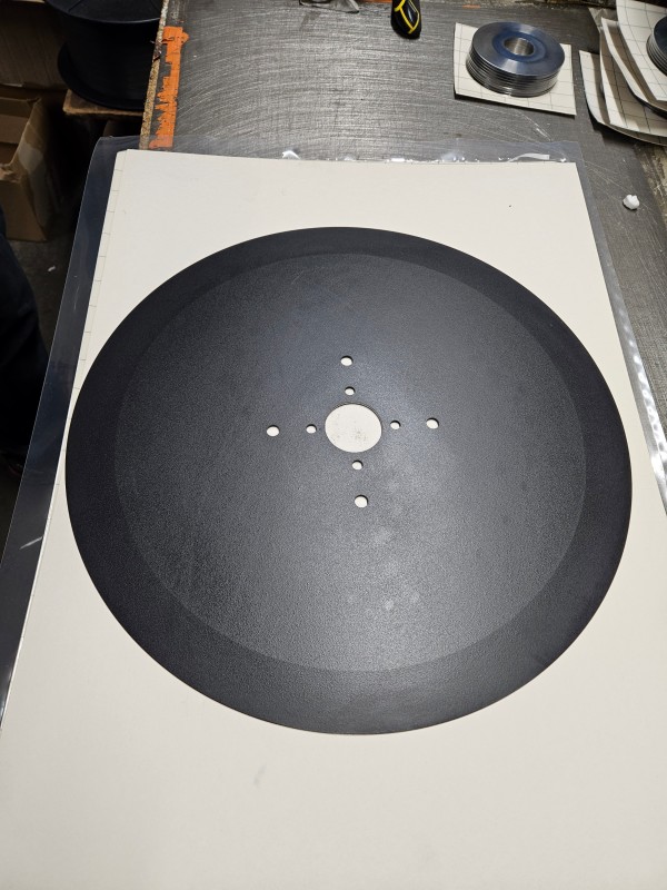 Ces lames ont été recouvertes avec un revêtement Teflon dans le but d'éviter l'adhérence des produits de notre client. Le téflonnage est une activité pratiquée régulièrement chez Hérouard notamment pour l'industrie agroalimentaire pour les chaînes de production et les machines de découpe de marchandises (viandes, etc...).